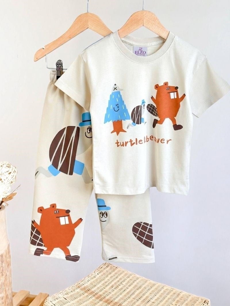 Ürün Açıklaması: Sevimli hayvan figürleriyle tasarlanan bu çocuk takımı, eğlenceli görünümü ve rahat yapısıyla öne çıkar. Tişört üzerindeki “Turtle & Beaver” baskısı ve uyumlu desenli eşofman altı ile kombin tamamlanır. Yumuşak ve nefes alabilen kumaşı sayesinde gün boyu konfor sağlar, hem evde hem dışarıda rahatlıkla kullanılabilir.
